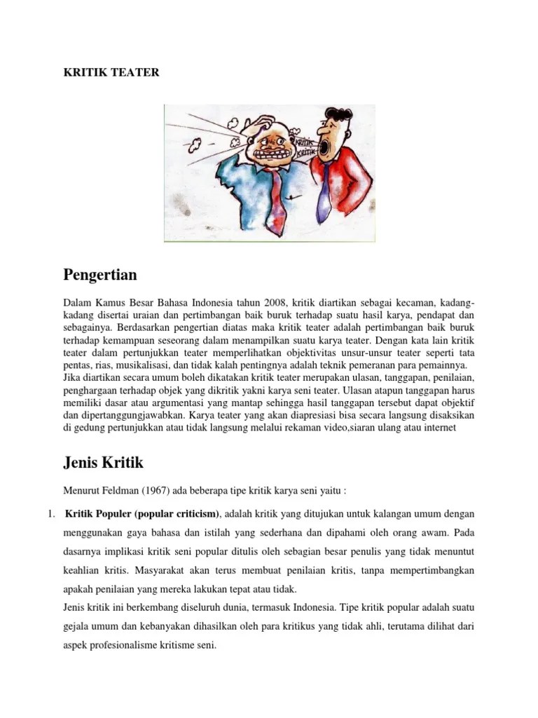 Konsep karya cipta teater b. Untuk memperjelas pemahaman kita tentang seni budaya, artikel ini akan mengulas tentang pengertian seni budaya, macam, fungsi, dan contohnya. Semiotika teater, kritik teater, dan masih banyak lagi. Secara luas, pengertian seni teater adalah seluruh adegan akting dan peran yang dipertunjukan di atas panggung di depan banyak penonton. Kritik seni adalah kegiatan menanggapi karya seni untuk menunjukkan kelebihan dan kekurangan suatu karya seni, salah satu keterangan kelebihan kritik seni memiliki fungsi yang sangat strategis dalam dunia kesenirupaan dan pendidikan seni rupa.fungsi kritik seni yang pertama dan utama.